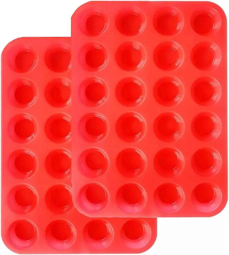 - Scoop batter into a silicone mini muffin tray, about 1 tablespoon each.