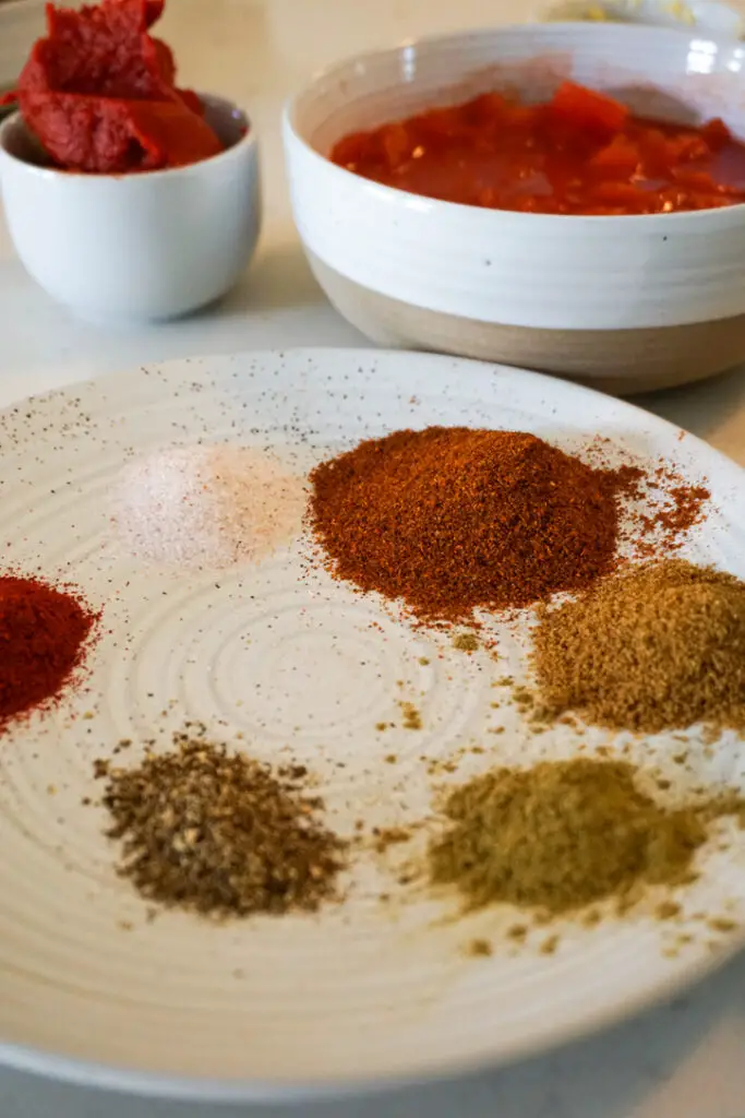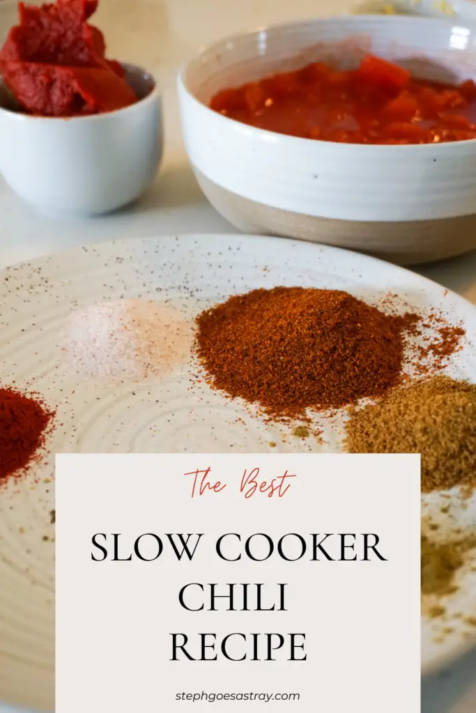 - Add Tomatoes, Tomato Paste, and Seasonings to the slow cooker.