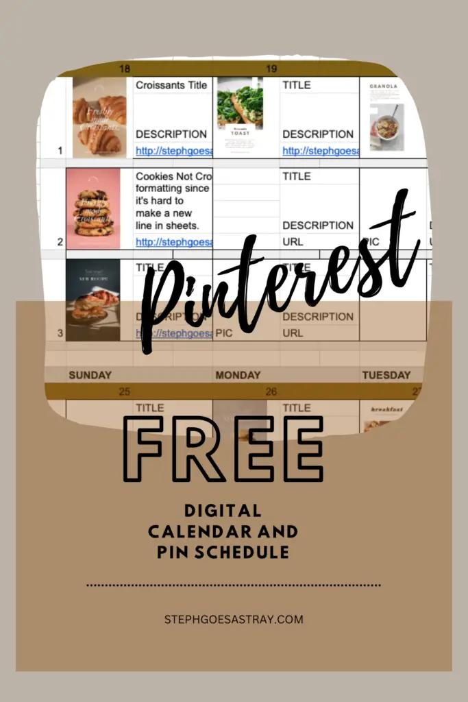 I needed some sort of digital planner to schedule my pins out, and I was not yet in a place where I wanted to pay for a scheduler such as Tailwinds or Later. I toyed with the idea of using google calendar or another calendar app.