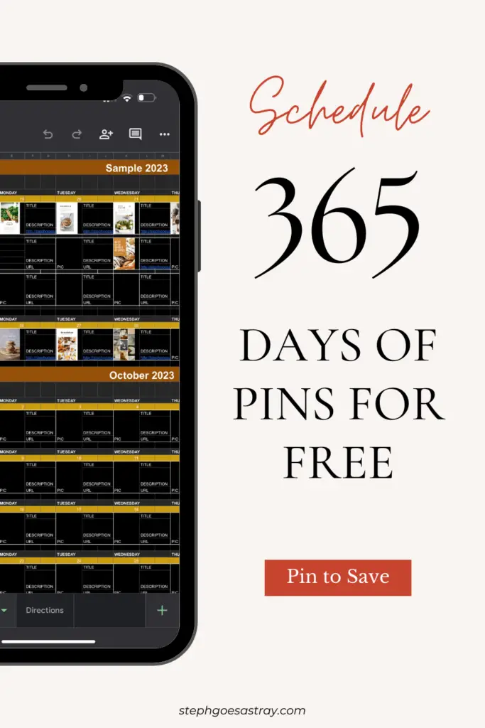 Now you are ready to schedule your pins! You can also rename your spreadsheet whatever you would like and customize it to your liking. There are directions included on the second tab to guide you through the different elements.